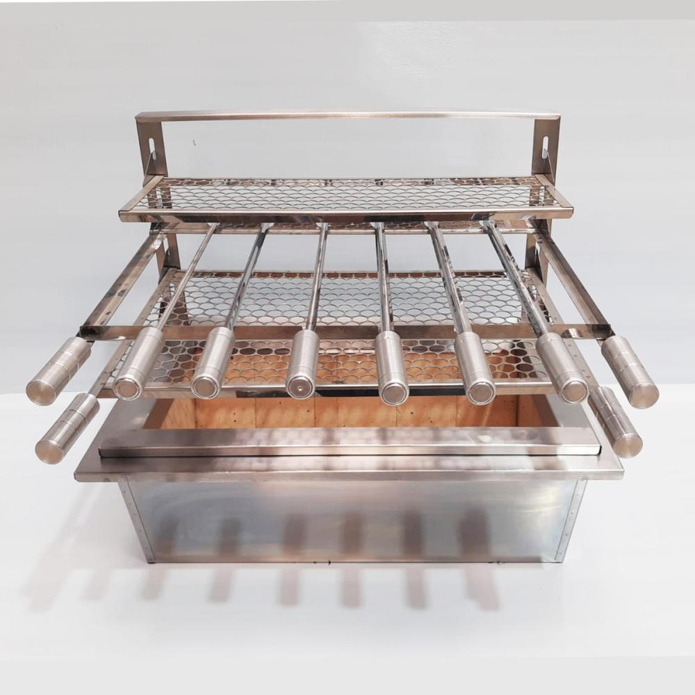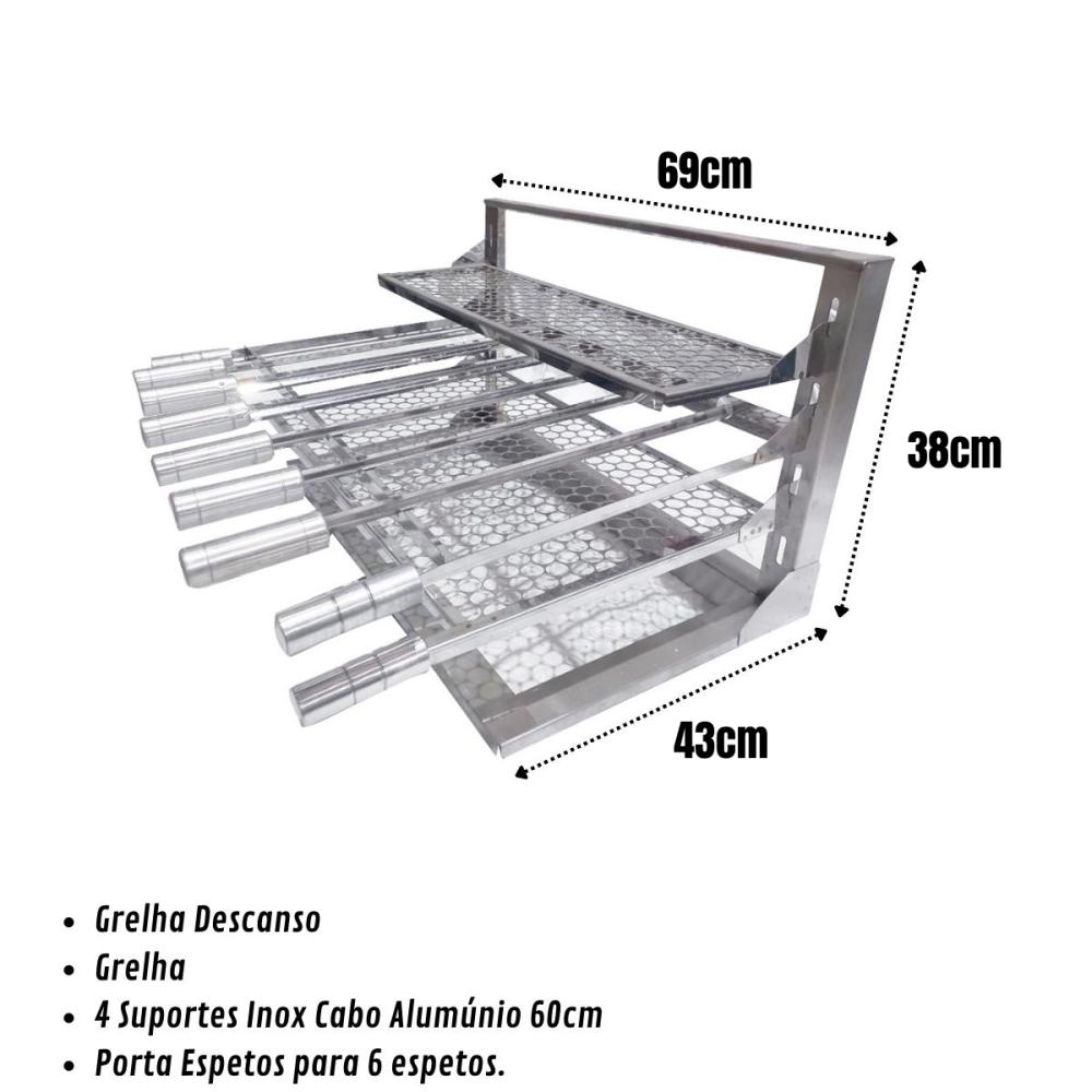 1 Suporte flutuante com grelha moeda e espetos em aço inox (60 × 34)