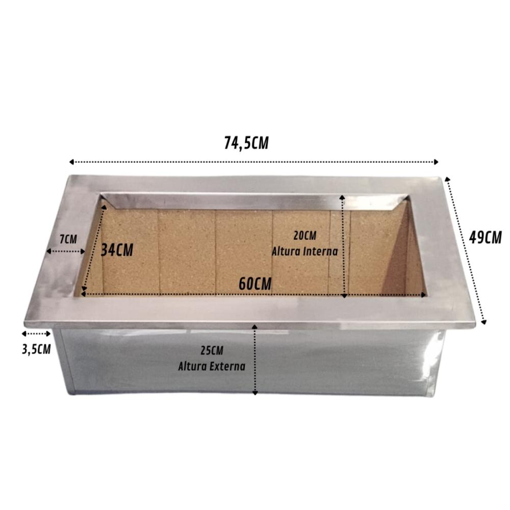 1 Braseiro em aço inox 430 escovado – 60 × 34 cm