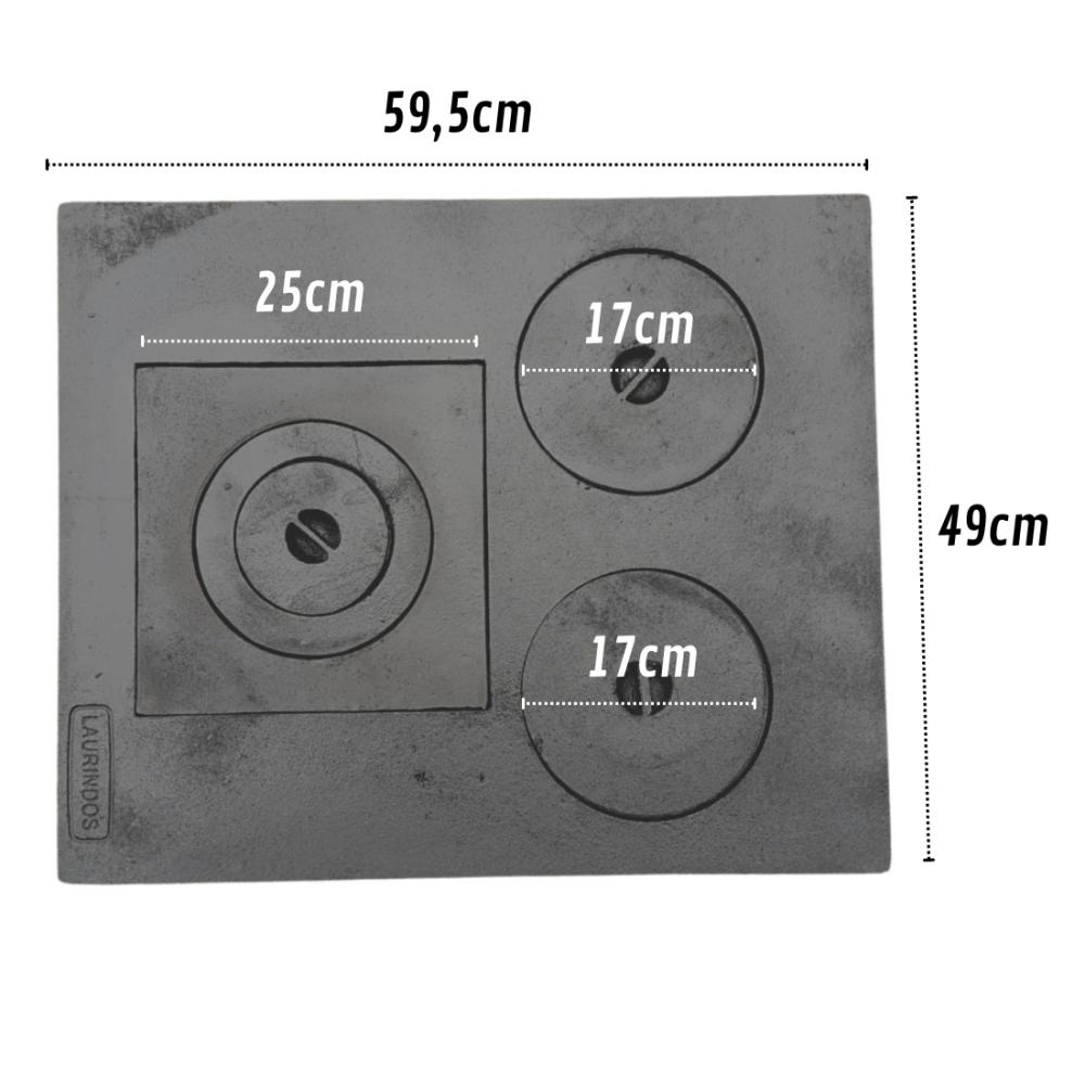 Comprimento: 59,5cm Largura: 49cm Espessura: 2cm Peso: 11,350 Kg Material: Ferro Fundido de alta qualidade
