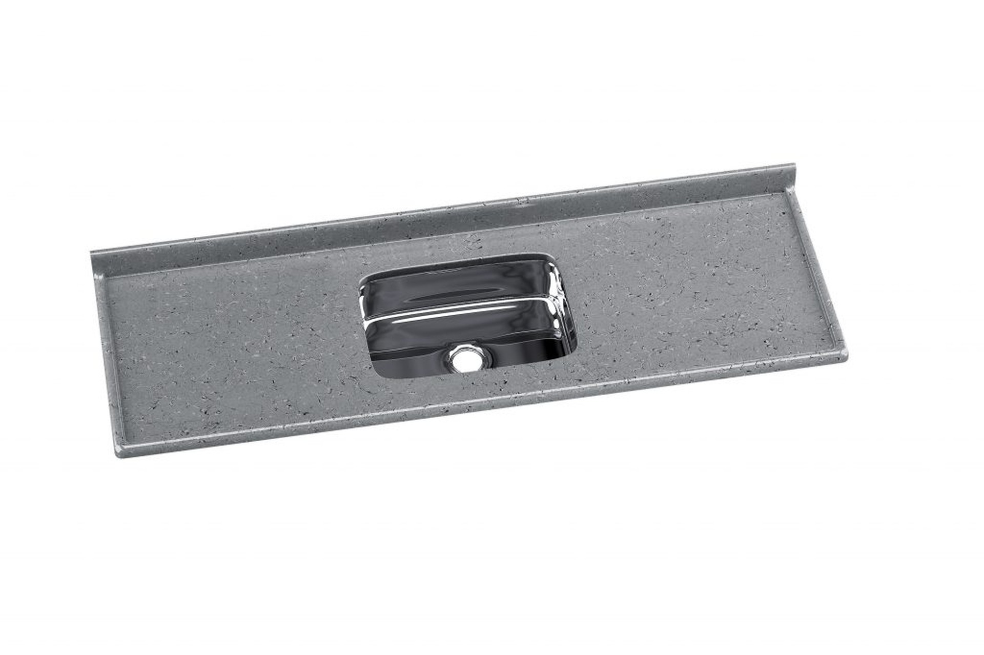 Produto em mármore sintético com espessuras reforçadas, com cobertura granitada de gel coat com brilho e resistência incomparáveis e cuba de aço Inox