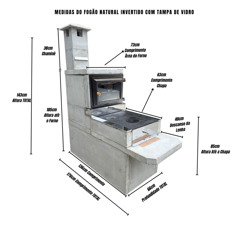 O Fogão Natural Invertido com Forno e Tampa de Vidro é a escolha ideal para quem busca eficiência, robustez e sofisticação em um único produto. Produzido em concreto armado revestido, ele garante alta durabilidade, excelente retenção de calor e um design moderno que valoriza qualquer ambiente, seja área gourmet, cozinha rústica ou espaço externo.