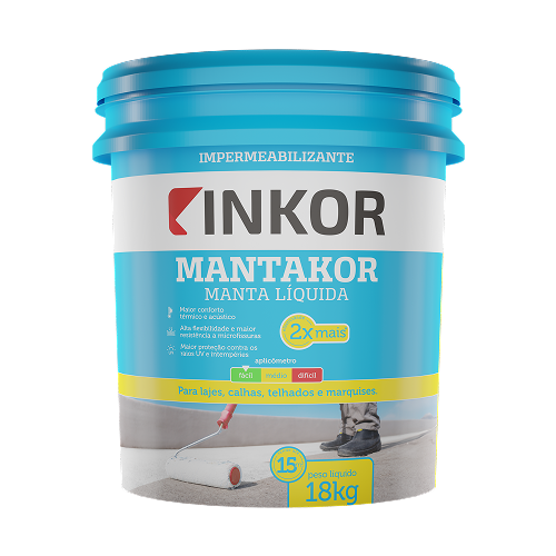 Mantakor Manta Líquida é um impermeabilizante à base de resina elastomérica, formando sobre as superfícies uma membrana impermeável, elástica e flexível, resistente às intempéries. Como a impermeabilização é de cor branca que reflete os raios solares, proporciona ao ambiente interno um bom conforto térmico. O produto é capaz de acomodar as movimentações da estrutura presentes no substrato, permite selar fissuras ativas até 0,2 mm e passivas até 0,5 mm. Mantém as propriedades em baixas temperaturas, é uma excelente barreira aos agentes contaminantes provenientes da atmosfera, possui baixa retenção de fuligem, redutor sonoro, resistente a raios ultravioleta e a intempéries, baixa absorção da água em longos períodos, fácil aplicação e pode ser pigmentado
