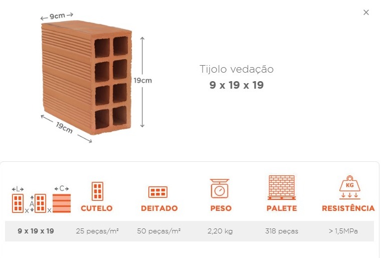 O Tijolo Reboco 9 x 19 x 19 é a opção perfeita para paredes de vedação leves e econômicas, oferecendo praticidade, bom desempenho e excelente acabamento. Fabricado com argila de alta qualidade e controle dimensional rigoroso, proporciona assentamento fácil, menor consumo de argamassa e superfície ideal para receber reboco.